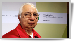 Kenneth Deer, amérindien de la nation Mohawk au Canada, fait partie de la délégation de l’International indigenous people forum on climate change (IIPFCC) venue au Bourget défendre la reconnaissance des doits indigènes dans l’accord international sur la climat.