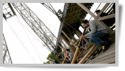 Suspension dans le temps et l’espace avec le duo Digériwest (Nicolas Abbes et Benoit Armand) donnant un concert de digéredoo à bord du pont transbordeur.