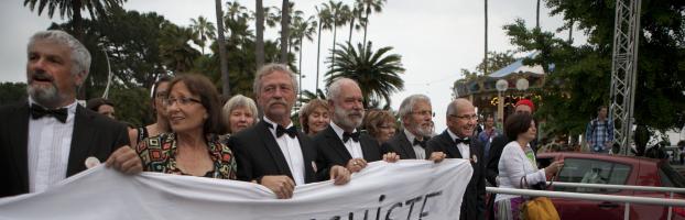 Une délégation des paysans du Larzac était à Cannes pour la présentation, hors compétition, du film Tous au Larzac. Réalisé par Christian Rouaud, le documentaire retrace la lutte des paysans du plateau aveyronnais contre l'extension du camp militaire décidée en 1971 par Michel Debré alors ministre de la Défense. Le récit d’une révolte populaire victorieuse qui a duré dix ans. La délégation, conduite par les figures historiques de la lutte dont José Bové, est arrivée à la projection du film avec une banderole contre le projet d’exploitation des gaz de schiste dans la région.