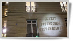Biens mal acquis. Paris, jeudi 24 novembre 2011. Le « collectif des illuminations des biens mal acquis » projette des images sur la façade de l’immeuble parisien de Goldman Sachs, 2 rue Thann, dans le 17ème arrondissement.
