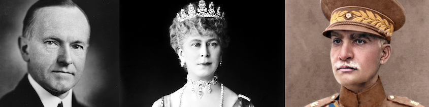 Calvin Coolidge (30ème président des États-Unis), Mary de Teck (reine consort du Royaume-Uni, impératrice consort des Indes), Reza Shāh Pahlavi (Shāh d’Iran) – montage MM©